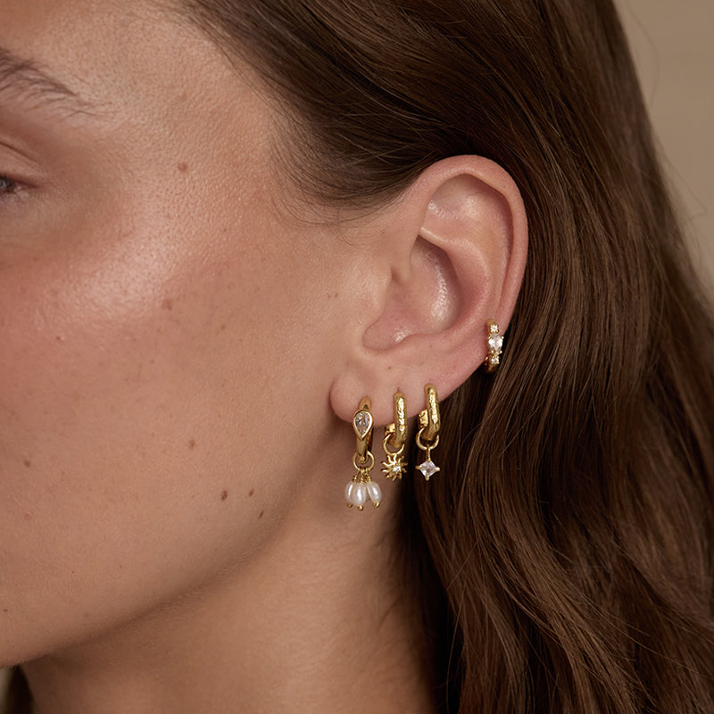A burst of sunshine for curated ear. The Soleil Charm features a sparkling zirconia nestled into a vibrant sunburst motif. Sunlit and bright Soleil is a timeless talisman designed to keep the summer spirit all year round.