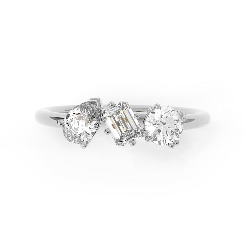 9K White Gold multi pear, emerald and round brilliant cut diamond ring.