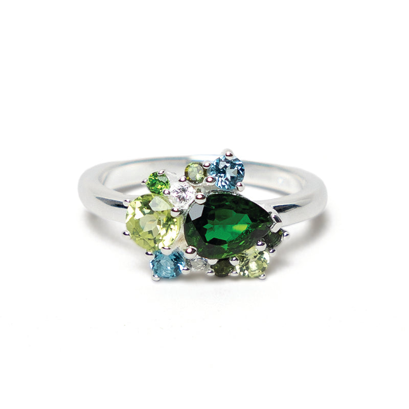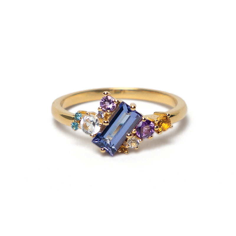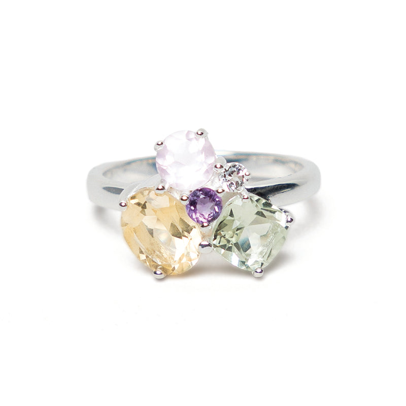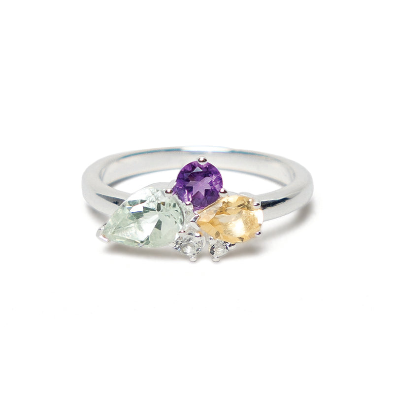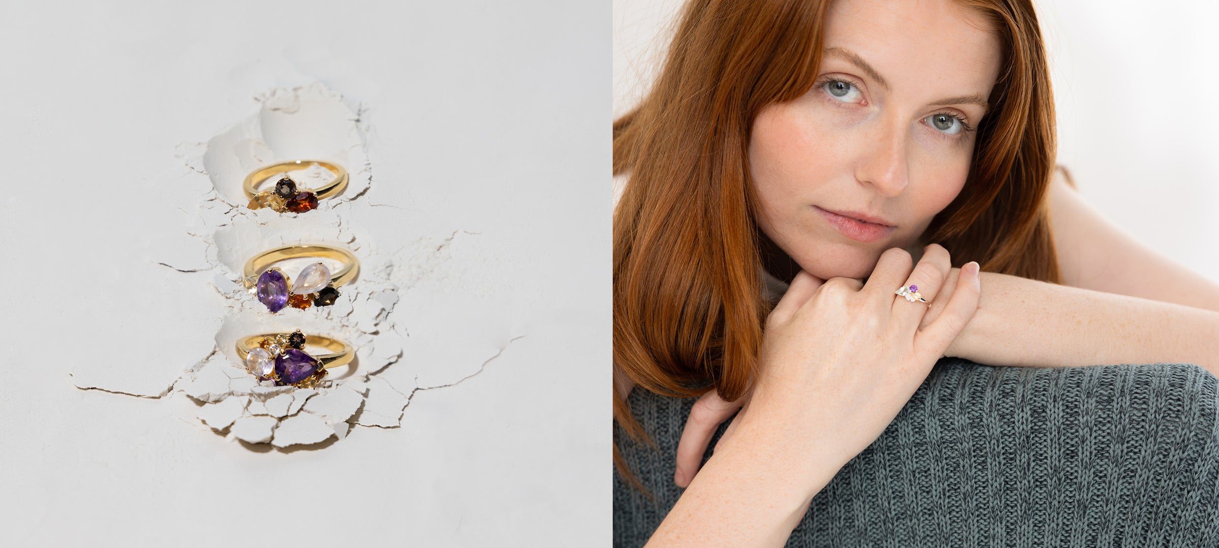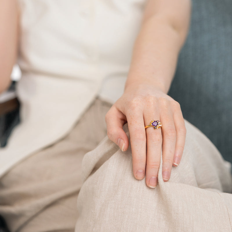 Delicate yet radiant, Bloom captures the feeling of becoming, like petals unfolding or light shifting through leaves. Inspired by nature’s quiet beauty, each ring brings together a mix of natural stones in unique cuts, colours and types.