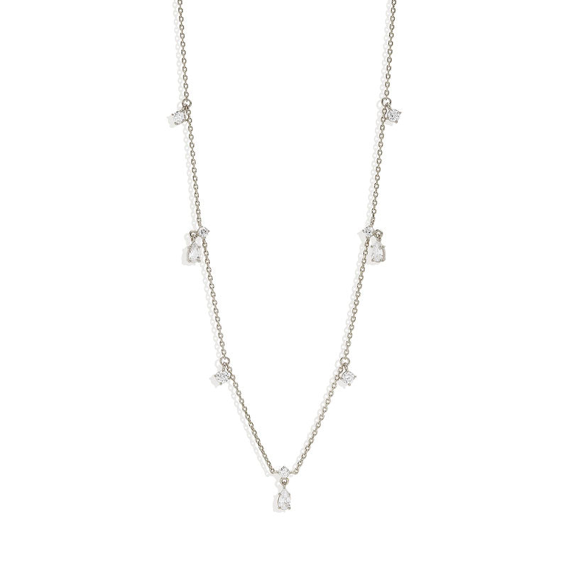* Features sparkling round and pear-cut cubic zirconias - shapes inspired by dewdrops and rain.