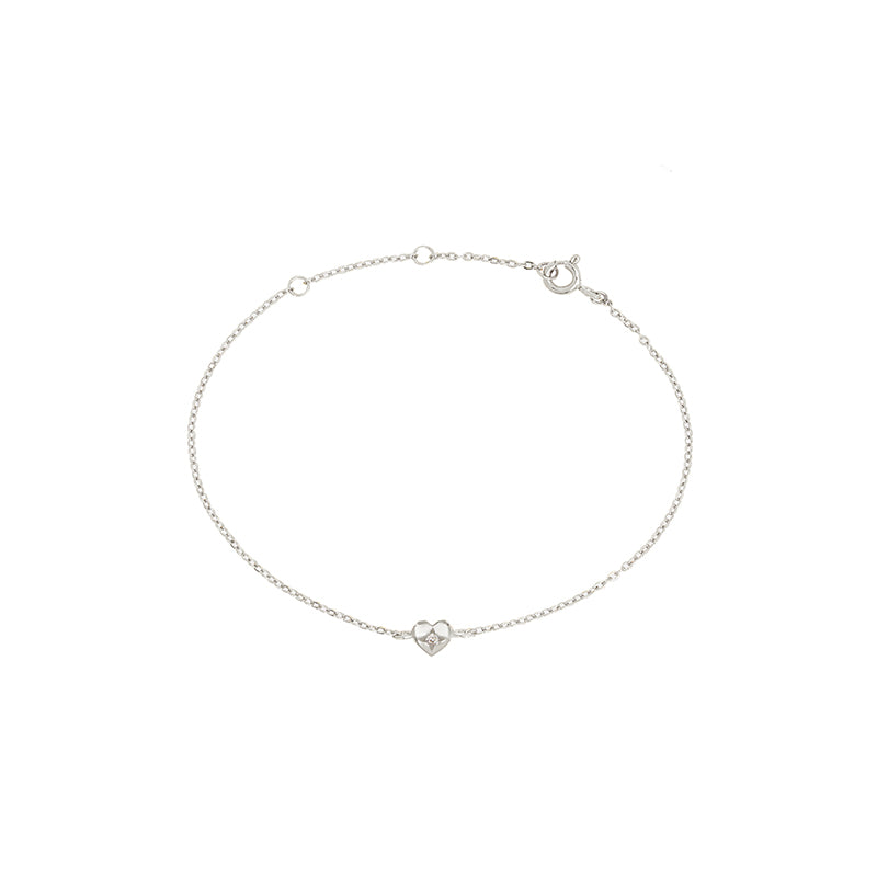 The Mini Heart Bracelet features a dainty heart pendant with a single crystal, suspended from a fine chain. Inspired by the E E Cummings poem I Carry Your Heart with Me, this meaningful piece is perfect for daily wear or gifting.