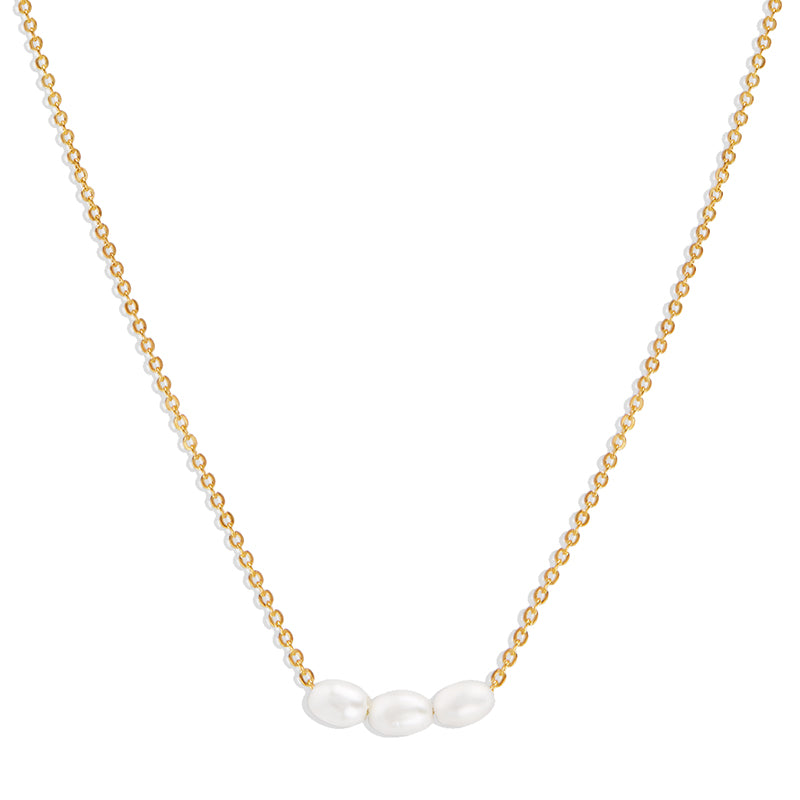 The Mini Pearl Necklace is a modern update on the classic pearl style, featuring three dainty freshwater pearls threaded onto a fine gold chain. Beautiful worn alone or layered, it is the perfect gift for yourself or someone special.