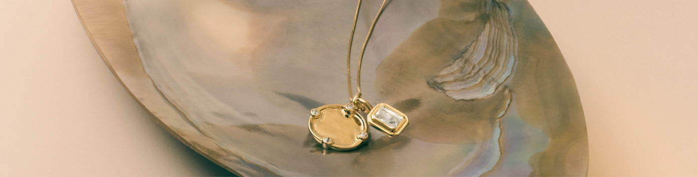 Resonate is a 9k solid gold charm collection by Kirstin Ash, featuring organic shapes, precious gemstones, and hand-drawn symbols. These hand-drawn symbols, alongside reimagined signature designs, embody the journey of your story.