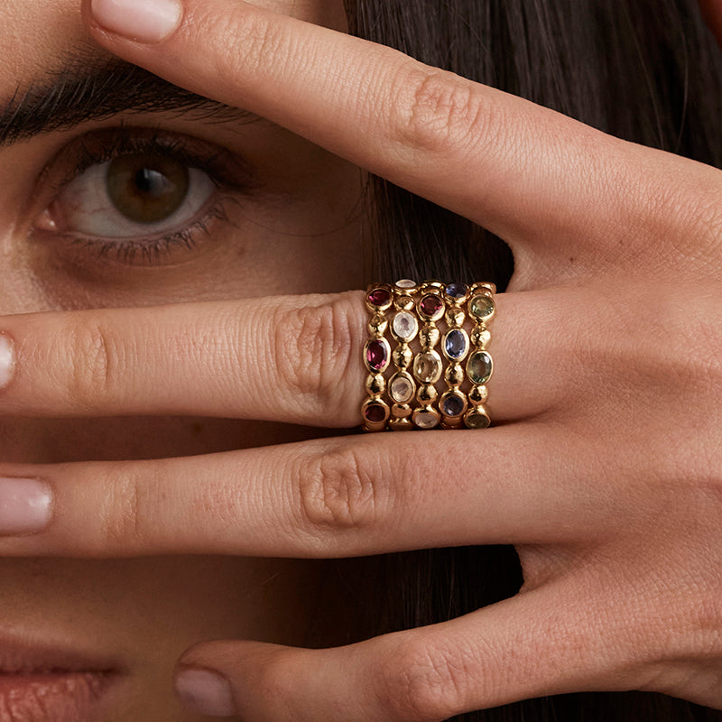 • Gem set rings: Available in a variety of stones such as moonstone, citrine and amethyst to name a few. Gem set rings can come in the following shapes - pear, round brilliant, emerald, marquise and square cushion.
