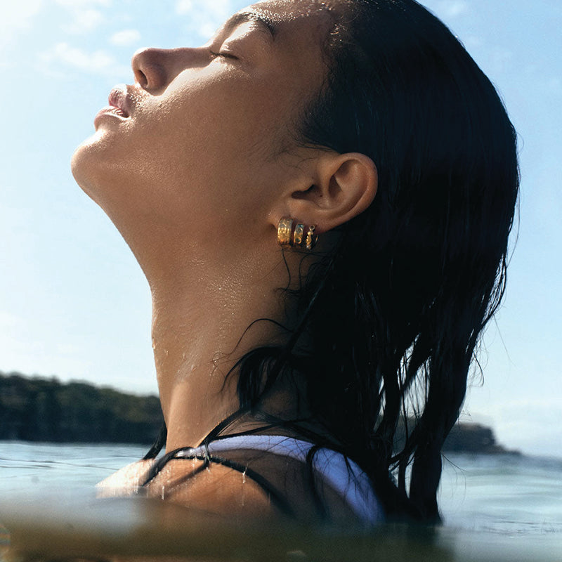 Discover new textures across organic silhouettes, from oversized studs to elemental cuffs. Statement hardware & playful pearls anchored by our everlasting connection to the sea.