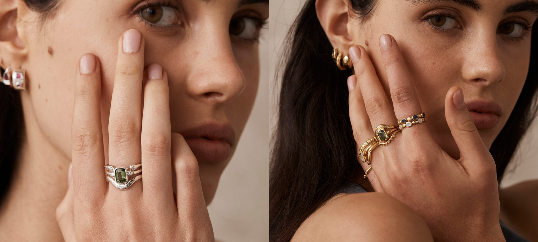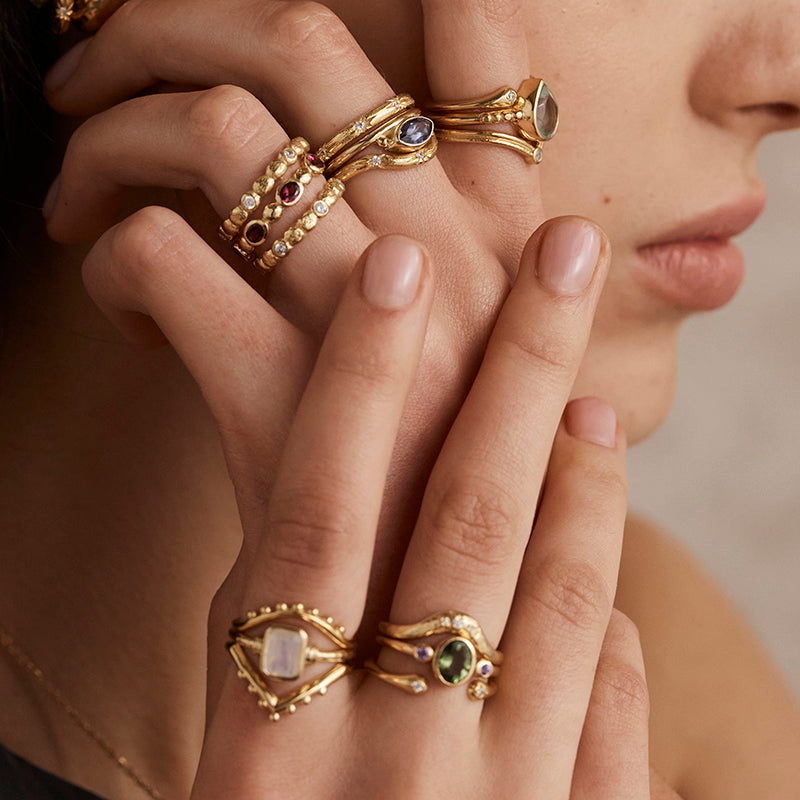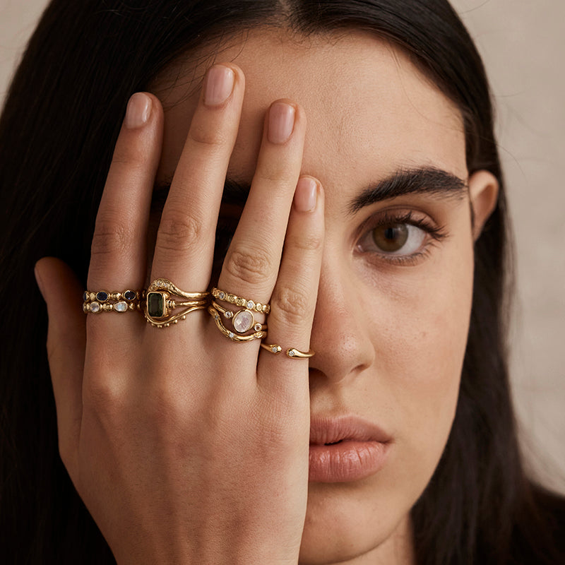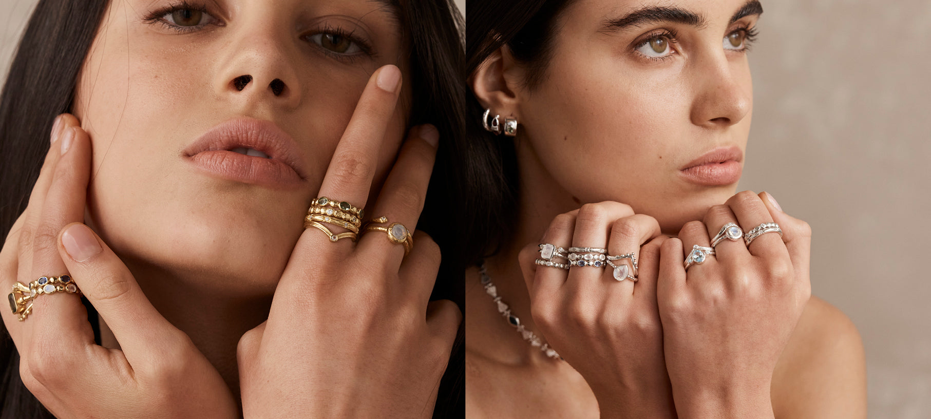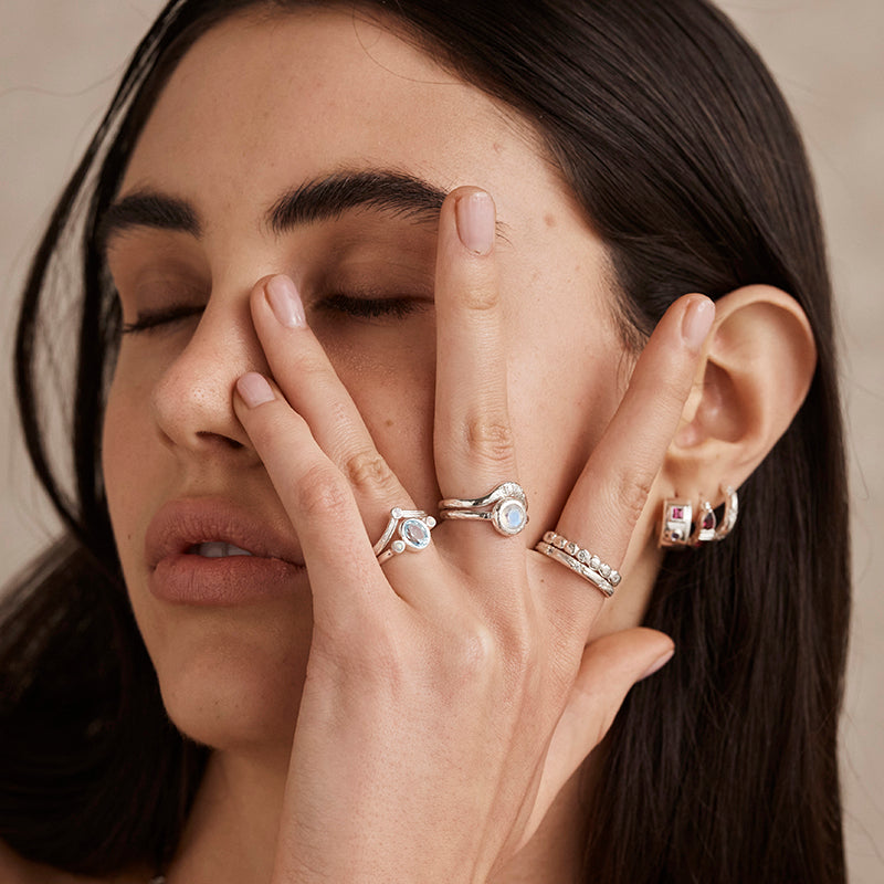 Whether it be bright and vibrant or cool monochromes, this stacking collection allows you to mix and match your rings to suit your style. Premium semi-precious stones set in sterling silver, durable 18k gold plating and made with love.