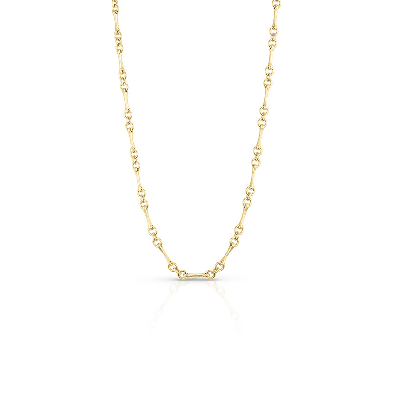 The Rue Necklace features lightly textured, organically shaped bars and round links, it layers effortlessly with your favourites or carries natural confidence all on its own.