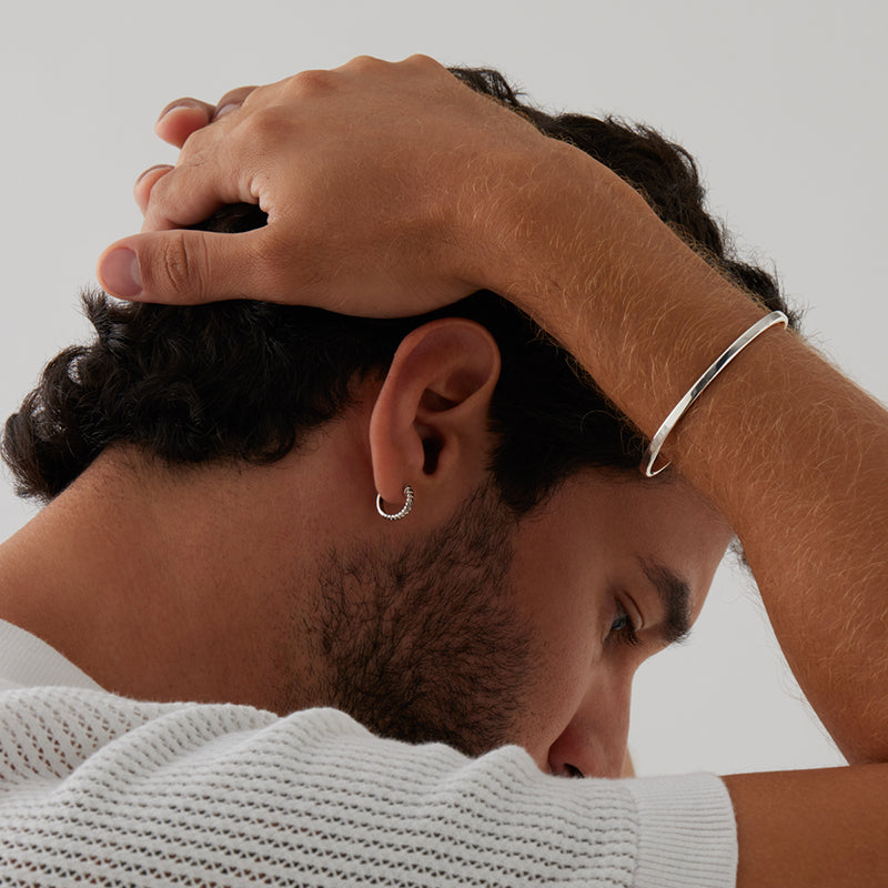Discover exquisite sterling silver men’s jewellery, including masculine necklaces, sleek rings, understated earrings, stylish bracelets and cufflinks.