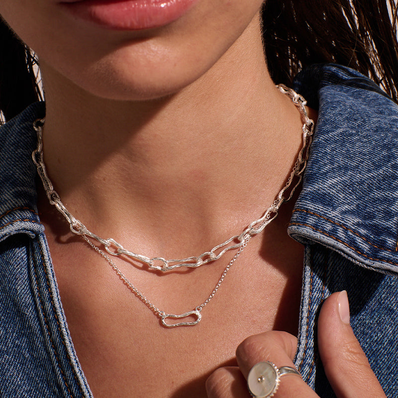 The handcrafted rope like texture reflects our individuality and reminds us that we are forever changing as we move through life. This chain represents an endless woven fabric of love, connection and infinity. It also reminds us that we are unique and that we bring our own unique value to the world and those around us.