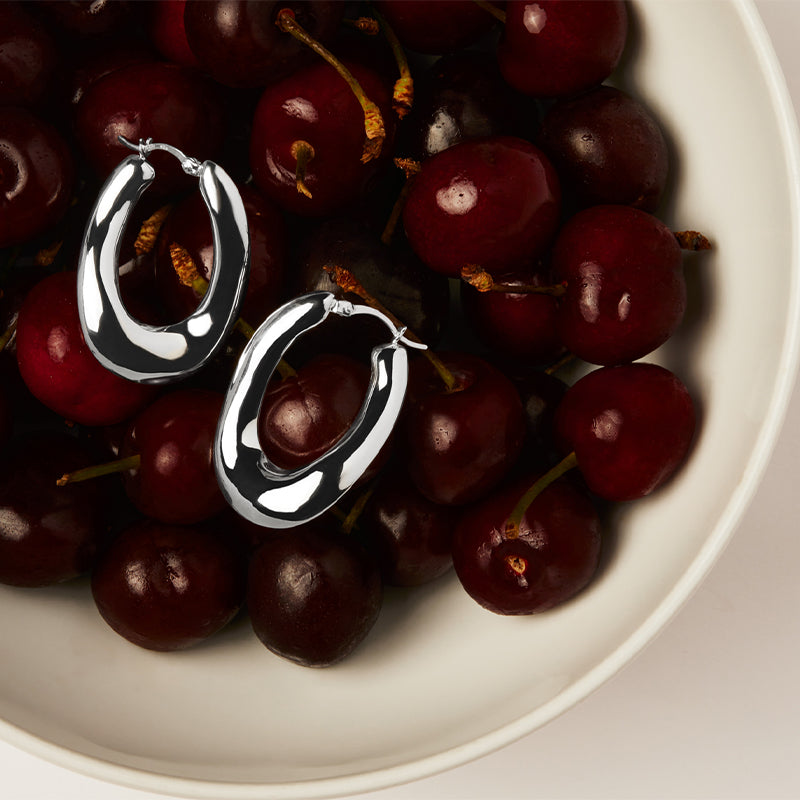 * 25x35mm wavy, puffed oval hoop earrings