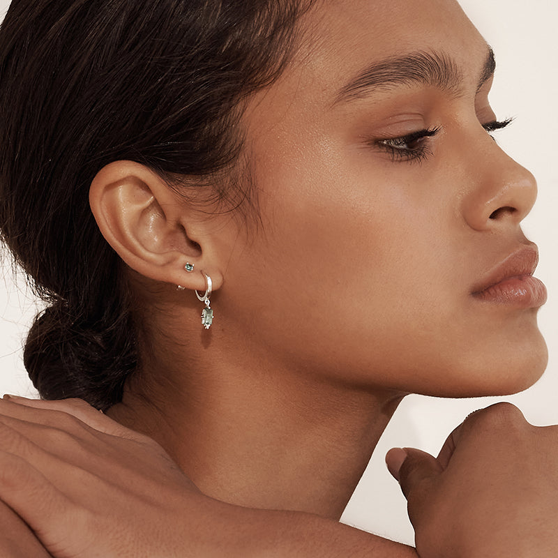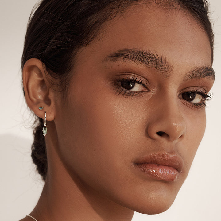 GREEN QUARTZ BAGUETTE DROP HUGGIES