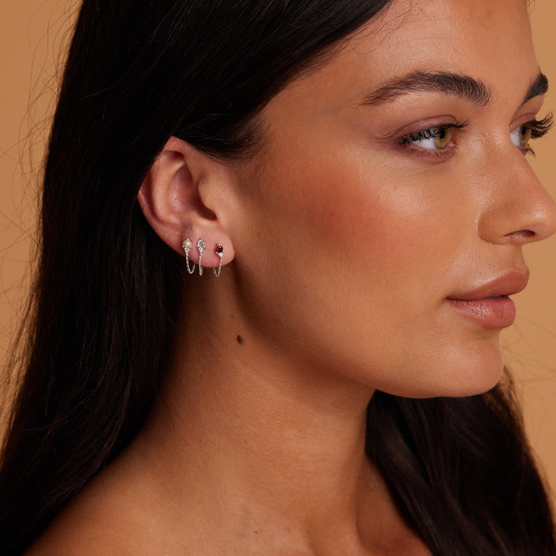 A versatile and delicate chain loops from the front of the stud, allowing you to adjust its placement.