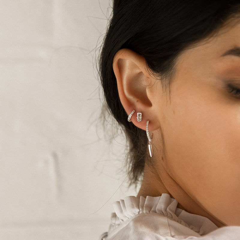 Sterling Silver huggie earrings with Cubic Zirconia.