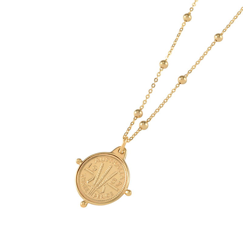 ROSARIO NECKLACE WITH THREEPENCE COMPASS COIN