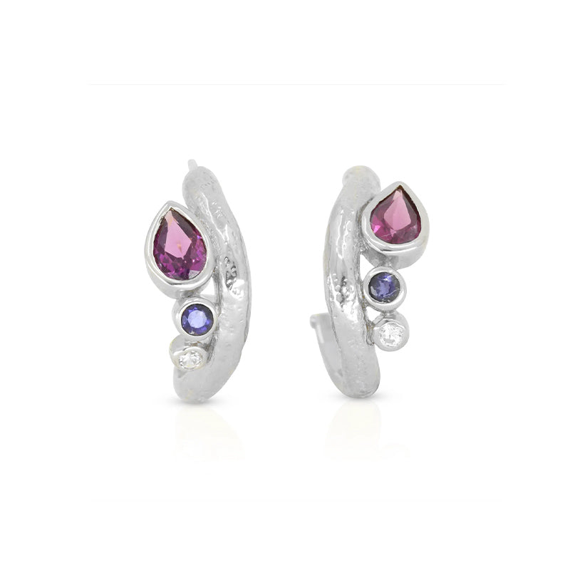 * 4x6mm Pear Rhodolite, 2.5mm Round Iolite, 1mm CZ
