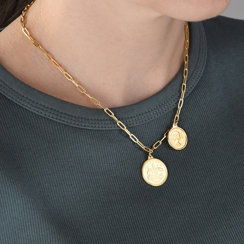 DOUBLE COIN CLIP CHAIN NECKLACE